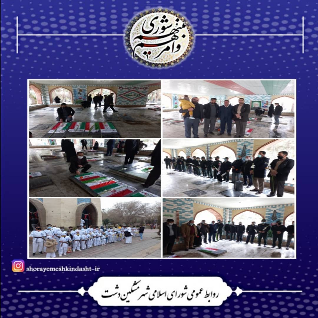 ✍ به گزارش پایگاه اطلاع رسانی و روابط عمومی شورای اسلامی شهر مشکین دشت - عصر روزپنجشنبه ۱۴ بهمن ماه ۱۴۰۰، مزار مطهر شهدای هشت سال دفاع مقدس و شهدای گمنام مشکین دشت به مناسبت گرامیداشت دهه مبارک فجر و چهل و سومین سالروز پیروزی شکوهمند انقلاب اسلامی با حضور مسئولان شهری و شهرستان فردیس ، خانواده معظم شهدا و شهروندان مشکین دشت در فضایی معنوی غبارروبی، عطرافشانی و گلباران شد.