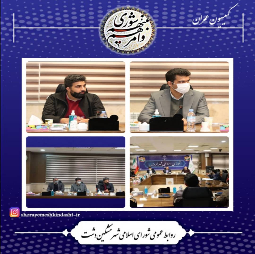 جلسه مشترک کمیسیون عمران شورای شهر فردیس واعضای کمسیون عمران شورای شهر مشکین دشت در سالن جلسات شورای شهر فردیس و با حضور معاونت عمرانی شهرداری فردیس و مهندس خلیلی مشاور عمران شورای شهر مشکین دشت برگزار گردید، در این جلسه روی سه موضوع بحث و گفتگو شد.
