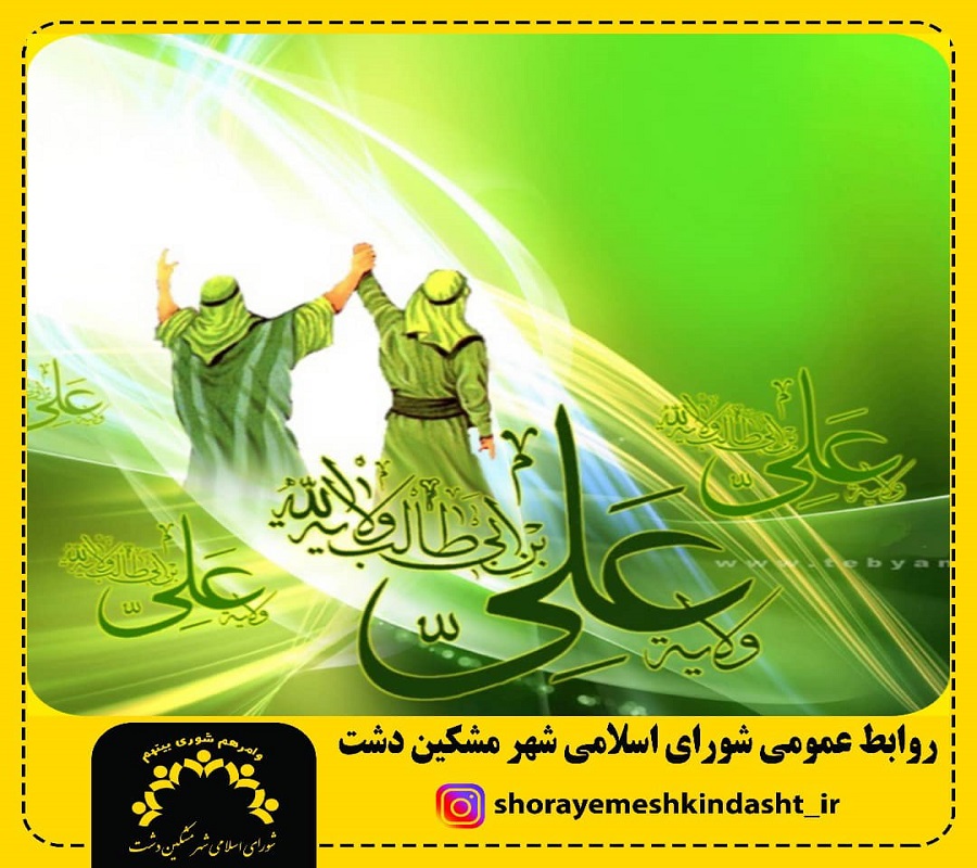 عید غدیر، عید کمال دین و اتمام نعمت در سایه ادامه خط رسالت پیامبر گرامی اسلام(ص) در شکل و قالب امامت و ولایت علی(ع) می باشد. این عید بزرگ  بهانه ای برای تجدید میثاق با ولایت است و امروز غدیر آغازی دیگر برای نوشیدن از چشمه زلال راستی، پاکدستی و انسانیت و همچنین فرصت و بهانه ای است برای تجدید میثاق با ولایت می باشد. اینجانبان این روز مبارک را به محضر مقام معظم رهبری (مدظله العالی) و همه عاشقان ولایت و امامت به ویژه مردمان خوب و نجیب و سادات عزیز شهر مشکین دشت تبریک و تهنیت عرض می‌نماییم و موفقیت و سعادت همگان را از درگاه ایزد منان مسئلت می نماییم. امید است خداوند متعال ما را از متمسکین راستین به ولایت مولی‌الموحدین حضرت امیرالمؤمنین علی (علیه‌السلام) محسوب فرماید.