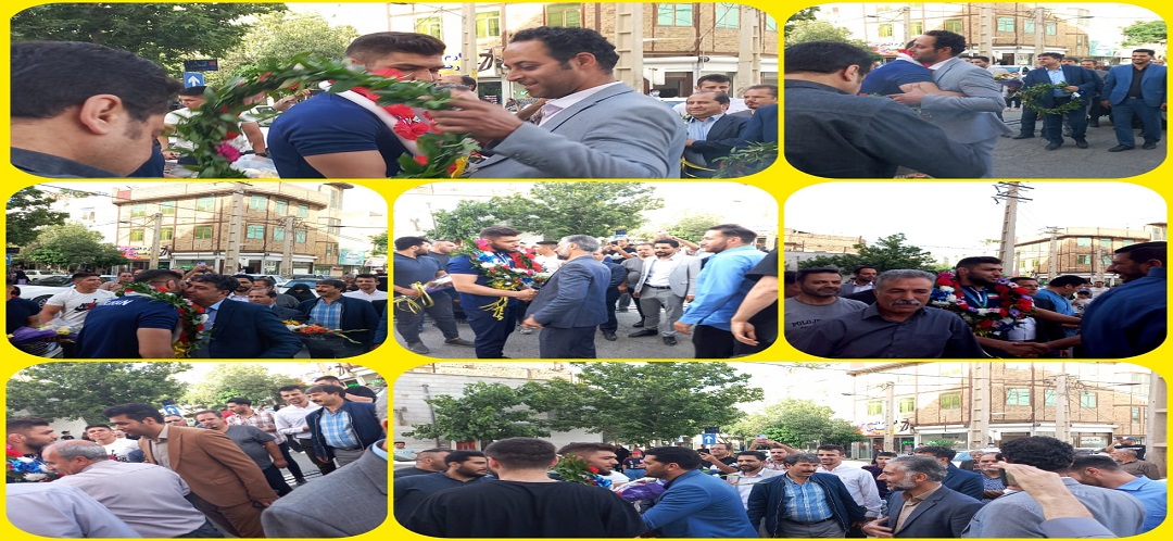 استقبال رئیس و اعضای شورای اسلامی شهر مشکین دشت، شهردار، مسولین شهری و شهرستانی از نایب قهرمان کشتی المپیک ناشنوایان برزیل محمد رسول قمرپور