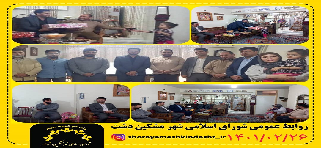 عصر روز دوشنبه 1401/02/26 اعضای شورای اسلامی شهر و سرپرست شهرداری مشکین دشت و تعدادی از پرسنل شهرداری به خانه ماهور رفته و از ایشان و خانواده دلجویی کردند.